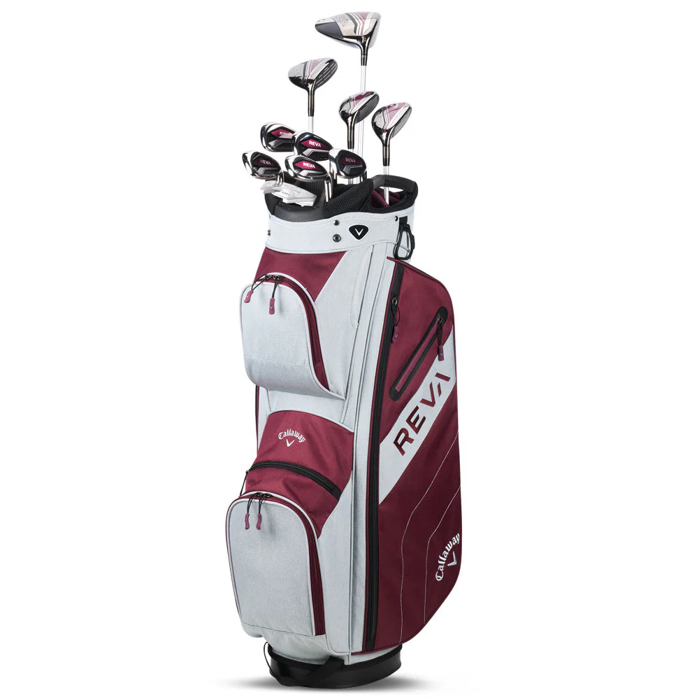 The new REVA 11-Piece Complete Set from Callaway, the #1 brand for women’s equipment, is designed with premium performance in mind. This complete offering is engineered for women of all skill levels who want to increase their distance, hit great shots, and enjoy the game more than ever before. This set includes: Driver, 3 Wood, 5 & 6 Hybrids, 7 through 9 Irons, Pitching and Sand Wedge, Putter, Cart Bag, and (5) Headcovers.