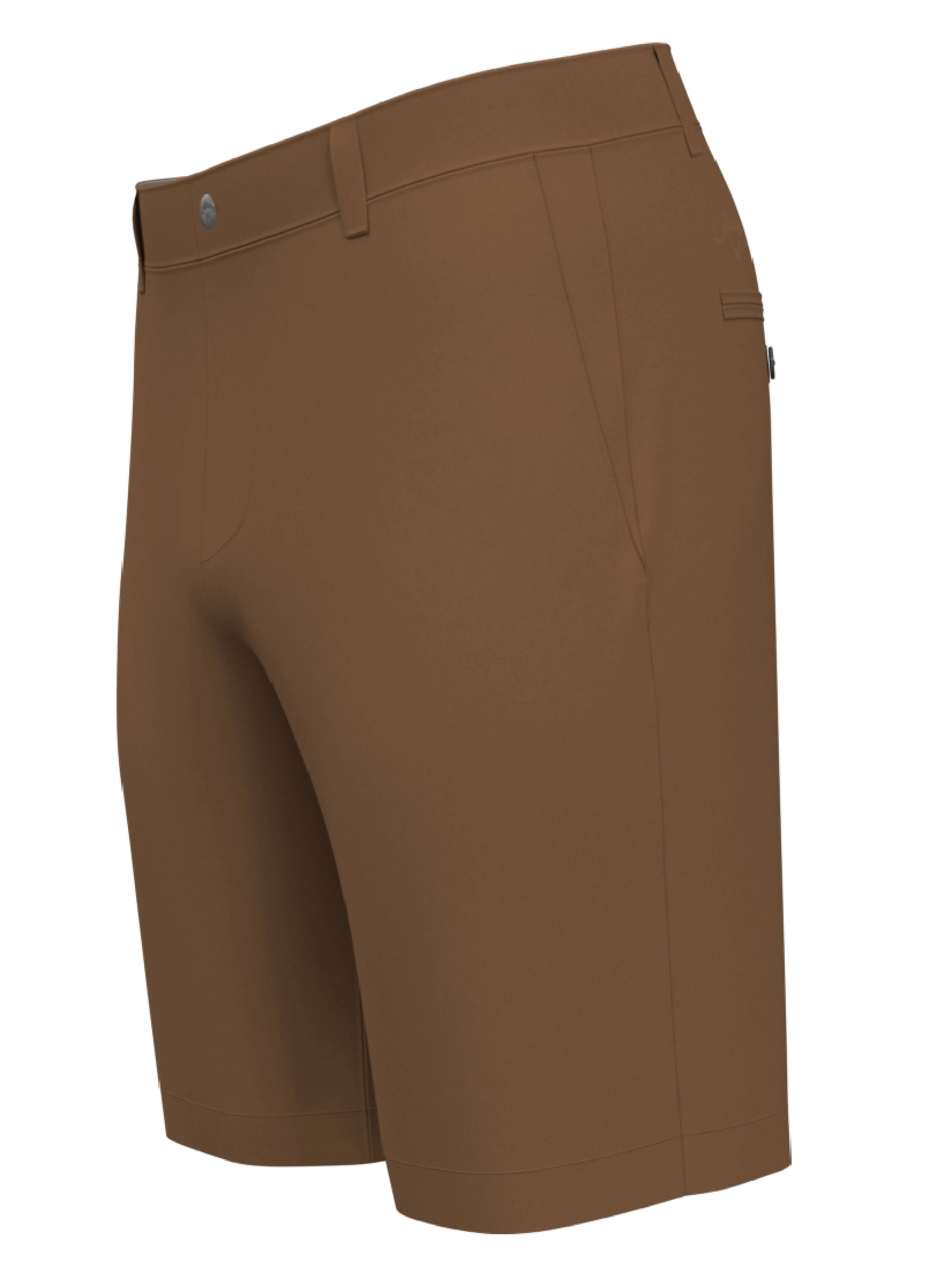 A practical addition to any guy’s golf wardrobe, these Callaway flat front shorts have a sleek solid-colored design that complements almost any top with ease. The men's golf shorts feature stretch in both the fabric and waistband for a comfortable and flexible fit. They’re crafted with a tight plain weave pattern that stands up well to regular wear and washing. Sun protection helps to block damaging UV rays, while moisture wicking helps to keep you dry during long rounds.