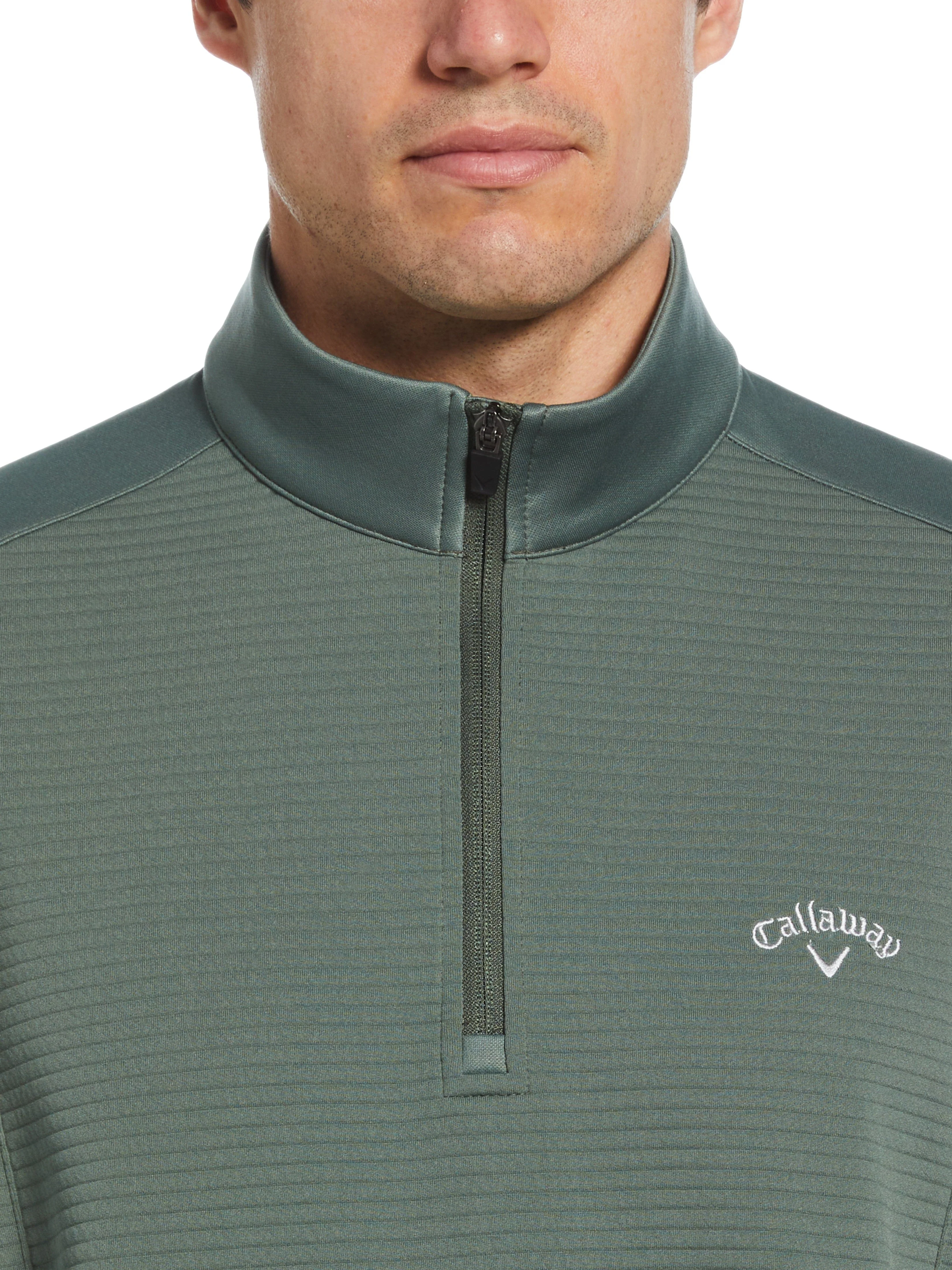This men's golf pullover from Callaway Apparel is crafted with a soft single knit fabric, providing a lightweight feel. Offering a full range of motion and stretch so you can make every swing without restriction, the pullover design has modern design details including the banded collar and a 1/4 zip front closure. It helps you stay comfortable and dry through weather conditions and UPF sun protection that filters out damaging UV rays to add confidence under sunny skies.