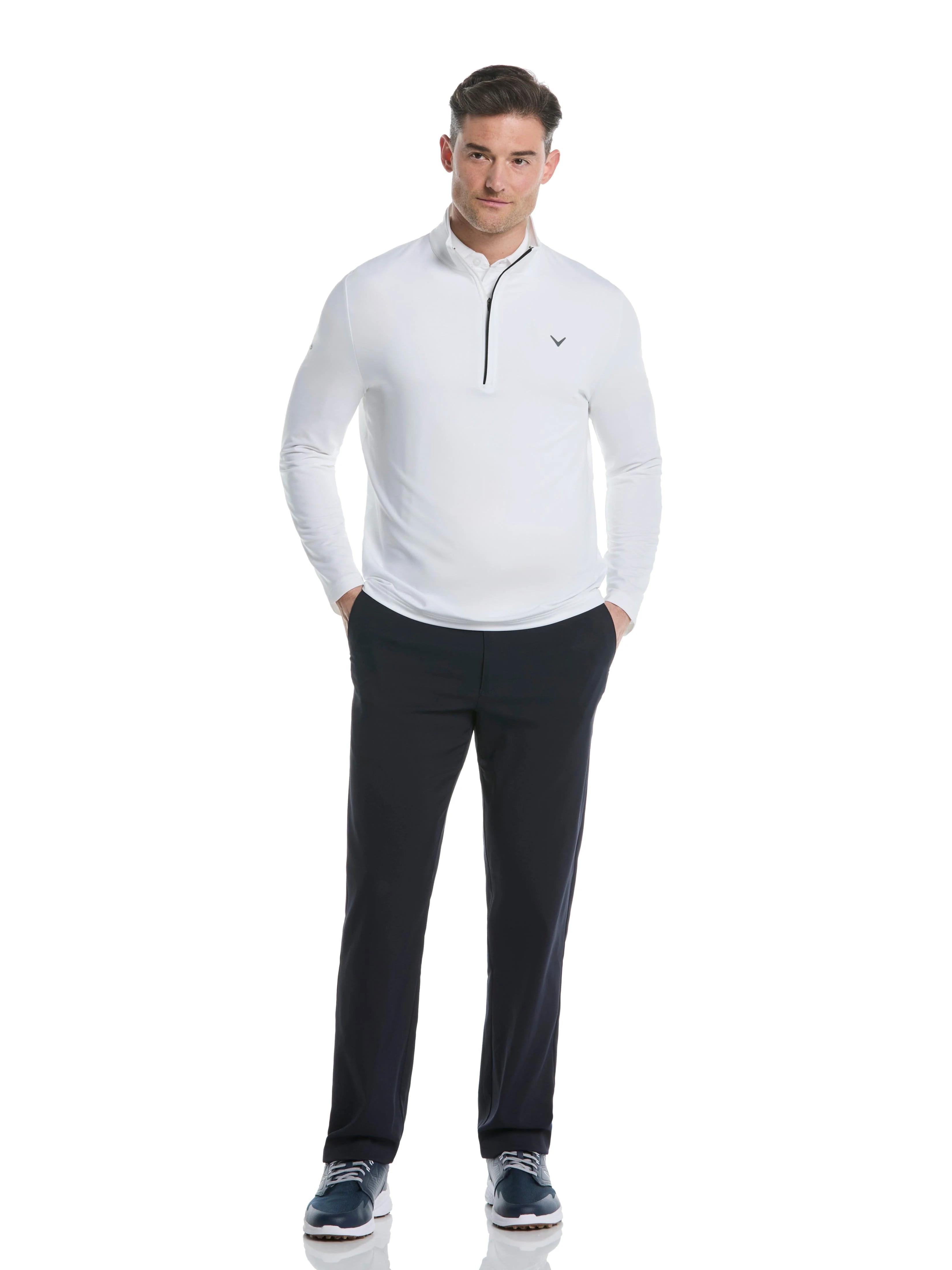 A perfect addition to any golf wardrobe, this Mens Solid Sun 1/4 Zip Pullover offers more than just sun protection. The 1/4 zip design allows for easy on and off, while the pullover style exudes an effortless elegance. Be confident and stylish on and off the green with this must-have pullover.