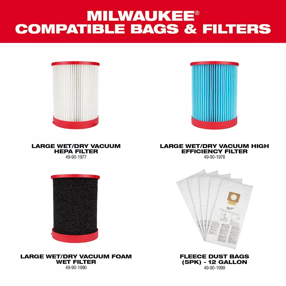 - Can be used with a MILWAUKEE Fleece Dust Bag for less debris build up on the filter