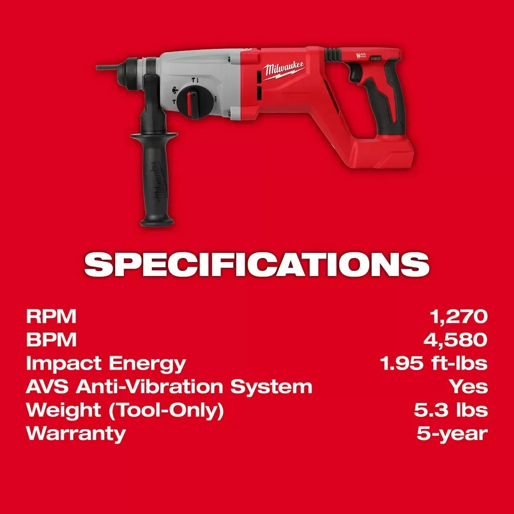 • Milwaukee 2613-20 M18 18V Brushless SDS Plus D-Handle Rotary Hammer - Bare Tool