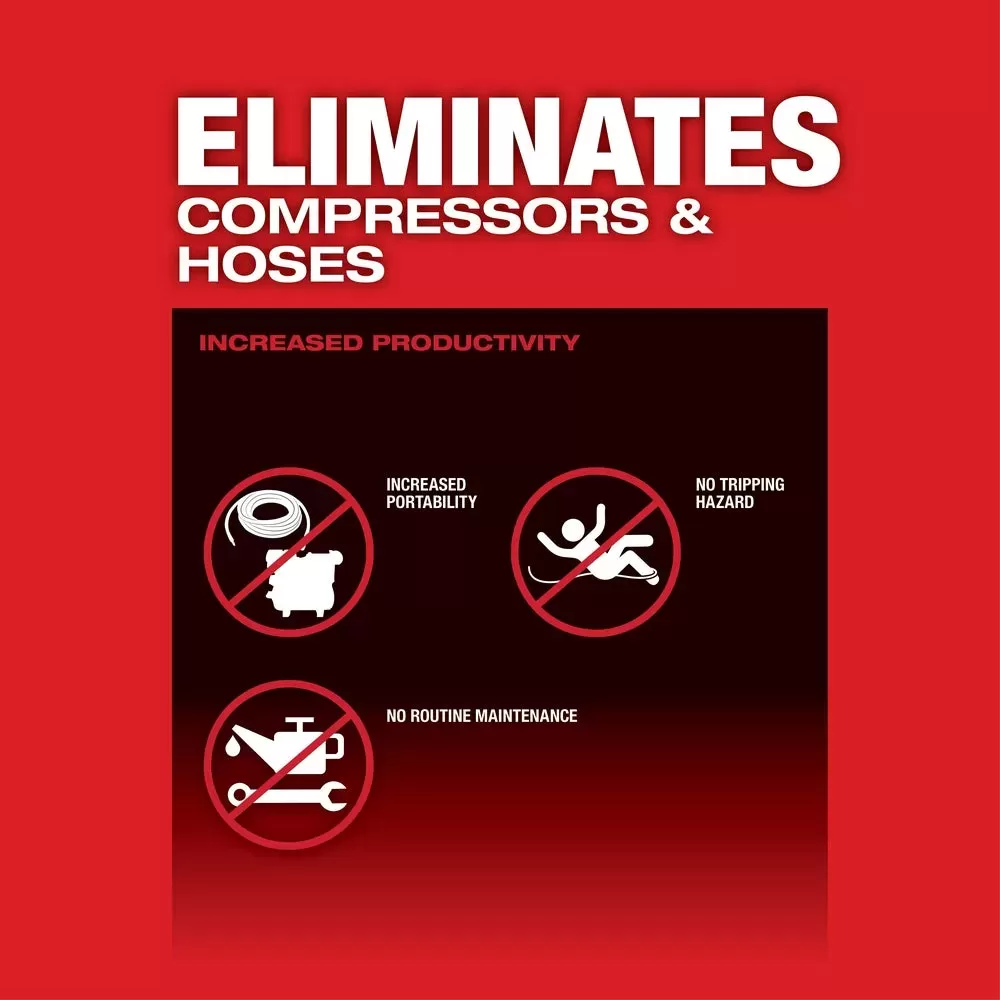 • Eliminates Compressors and Hoses, providing greater productivity, portability, and lower cost of ownership
