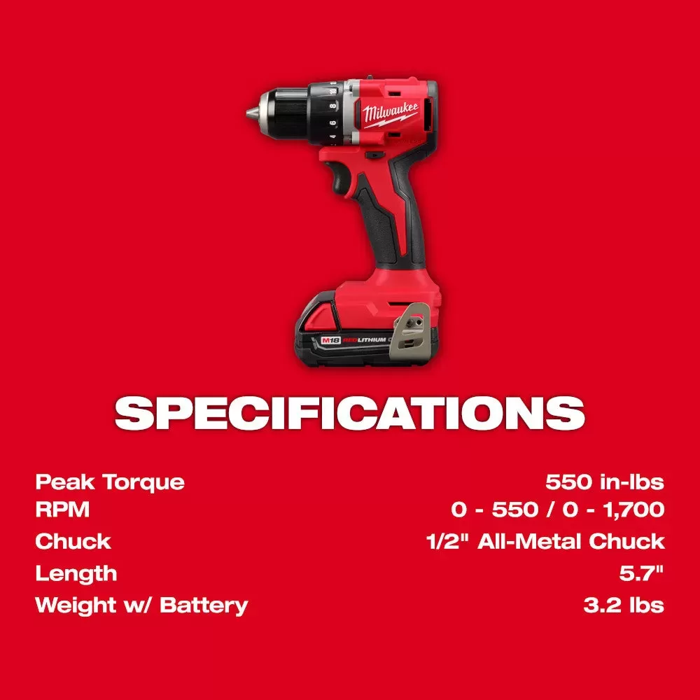 - M18 Compact Brushless 1/2" Drill/ Driver(3601-20)