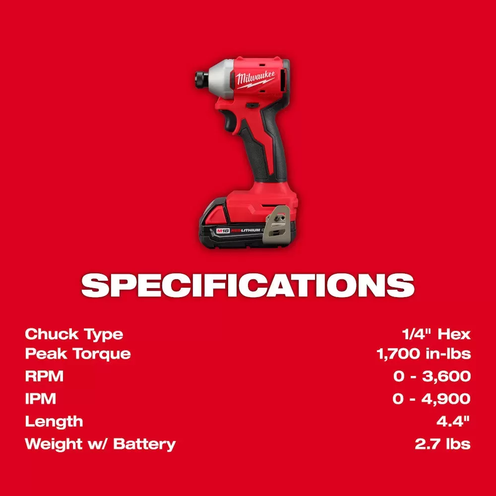 - M18 Compact Brushless 1/4" Hex Impact Driver(3650-20)