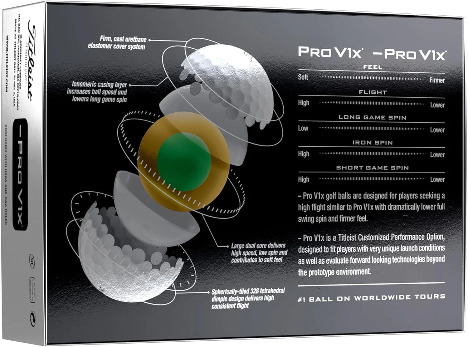Titleist庐�Pro�V1x庐 Left Dash golf balls are designed for players seeking a high flight similar to�Pro V1x庐�with dramatically lower full swing spin and firmer feel.